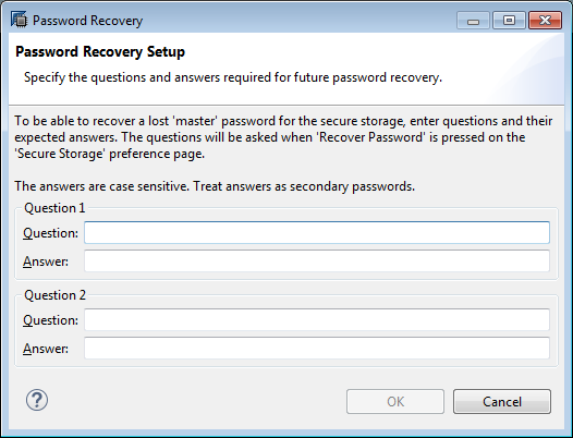 Alla prima esecuzione viene impostata una password principale. Se è necessario recuperare la password in un secondo momento, sarà necessario rispondere ad alcune domande. A questo punto, definisci quali dovrebbero essere le domande e le risposte.